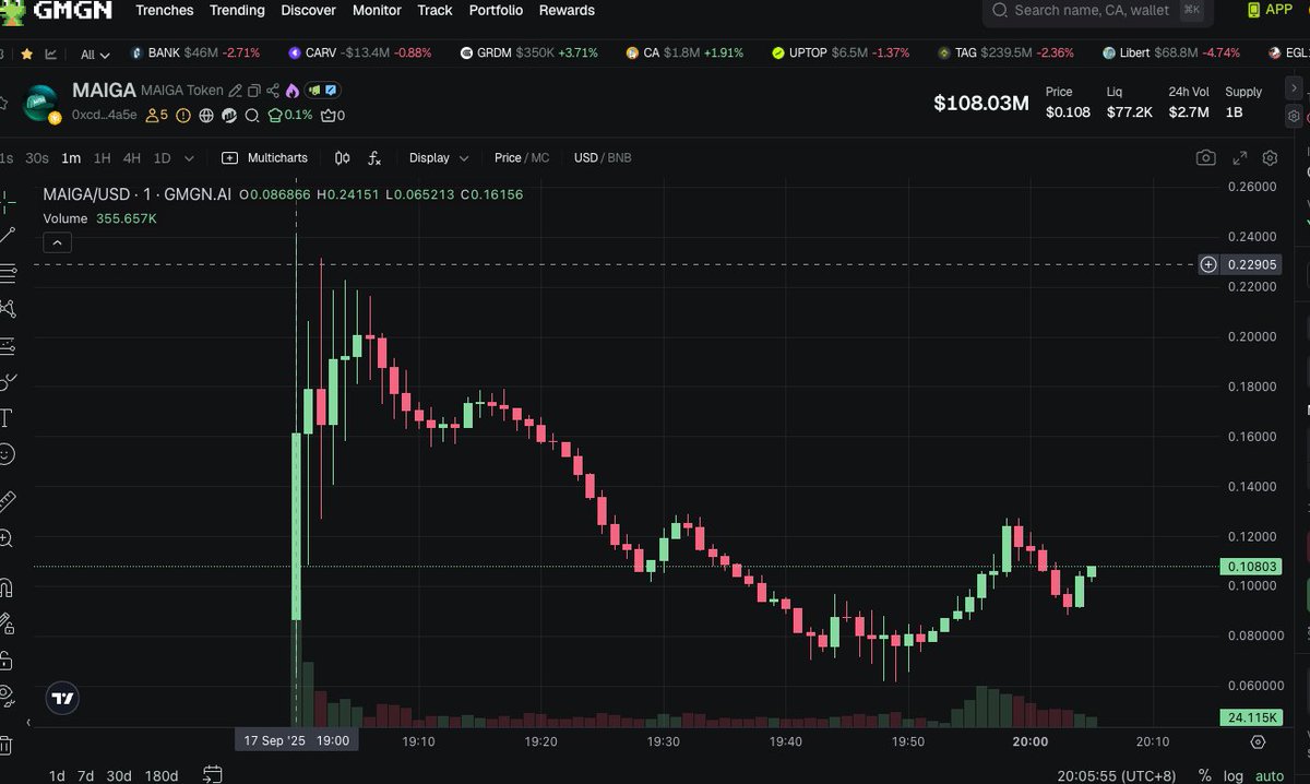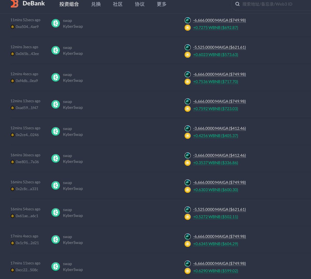 刚去吃了个饭,回来发现抢 $MAIGA 的人已经亏一半了,狗庄的多个账户也愉快的浇给了这些上头的伙计。
