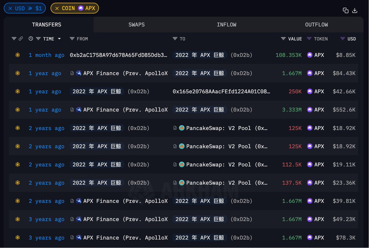 对 $APX 持有者来说,经历了跌宕起伏的一晚🤣APX 个人持仓 TOP1 地址 0xD2b...99088 持仓三年,一晚浮盈 378.3 万美元
