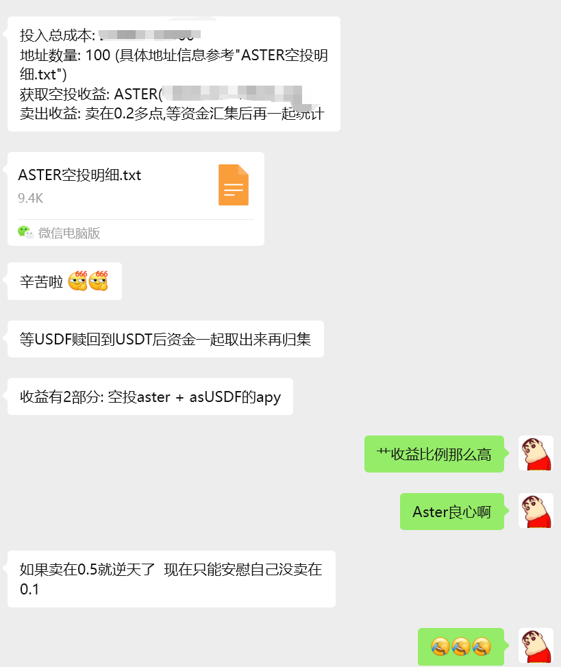 之前朋友帮我撸毛,我都没在意,今天和我说分钱了,我才发现 Aster的撸毛收益巨高,如果0.4卖不得了。。。工作室批量搞真的麻了,我只搞了100个号,分号多的真发财了。。。