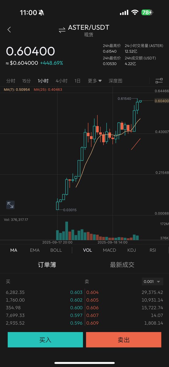 24小时4.13亿交易量,币价一天从0.06拉到0.6,让每个技术节点想TP的人都卖飞拍大腿,是不是有点 $HYPE 启动时候那味儿了?