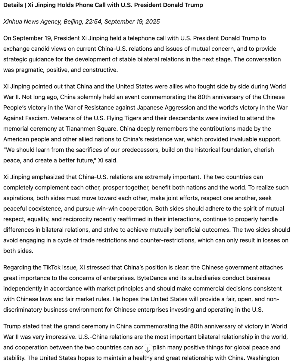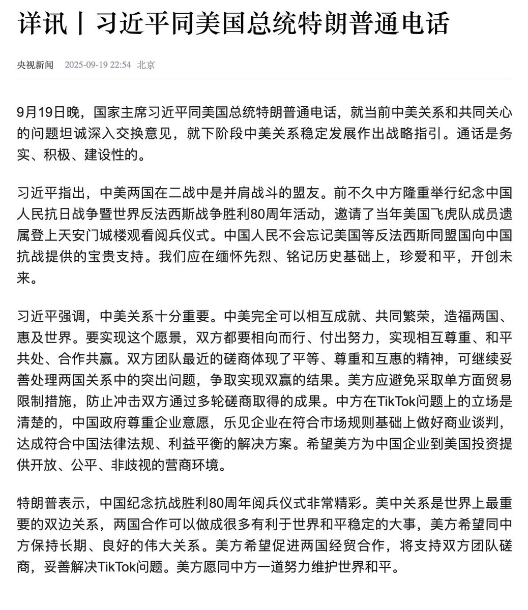 BREAKING: China released the content of the conversation between Xi Jinping and Trump突发:中国提前发布习近平和川普的谈话内容