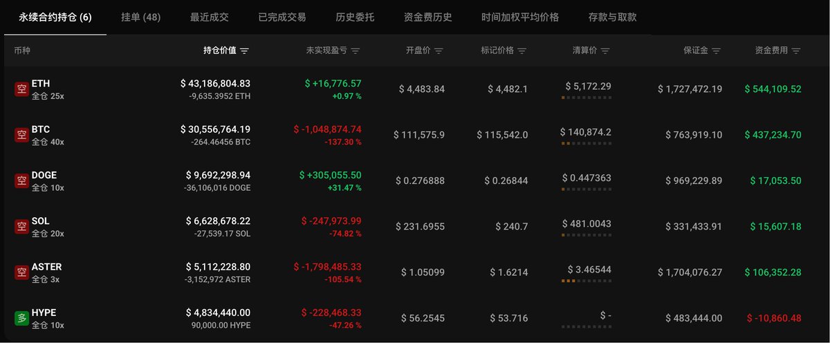 这下轮到 Hyperliquid 第一大 $ASTER 空头头寸紧张了昨晚币价持续上涨,他平仓割肉了 129.3 万枚代币并亏损 39 万美元;随后不甘心又重新加仓到了 511 万美元,目前持有 315.3 万枚代币,开仓价提高至 $1.05,浮亏 179.8 万美元了传送门 👉