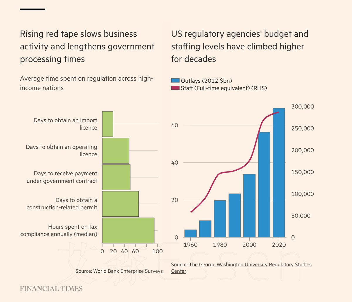 为什么欧美社会的官僚主义越来越严重呢?有三种解释:经济发展导致规则增多。斯坦福大学胡佛研究所研究员麦克劳克林指出,经济复杂化、新产业、政策项目和危机都催生了新规,例如金融危机后的审慎监管和数字化带来的数据治理、人工智能合规等。贸易限制和保护主义也加剧了国际企业负担。