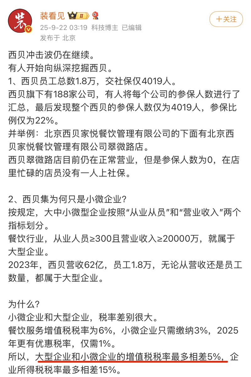 西贝员工1.8万 交社保却只有4019人,营收62亿却是小微企业,大头在北京,控制权在内蒙古。