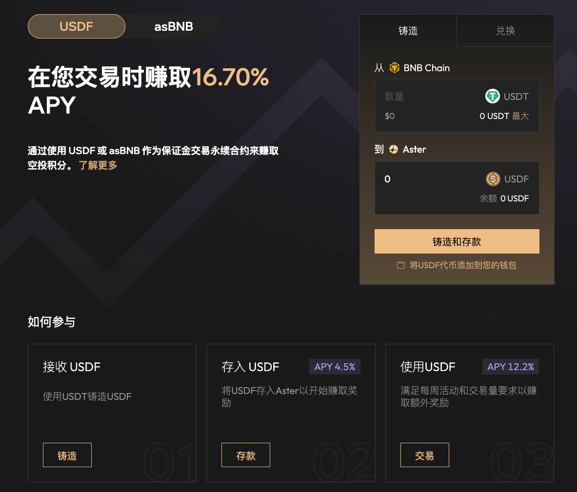 A:这里有个需要注意的地方:你入金最好用网页版打开,然后把 USDT 换成 USDf 作为合约保证金,因为可以获得额外的年化收益 -- 高达16.7%,简直不要太爽!