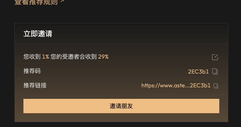 另外狮兄专门开了一个 ASTER 交易群,大家可以在里面相互切磋沟通,我也会尽量抽空回答问题,并邀请 Aster 团队小伙伴进驻。 链接限时开放,使用我的链接注册后可以加入: