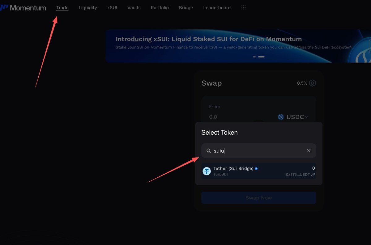 2、去Swap 找到 SuiUSDT,用 USDC 换一部分