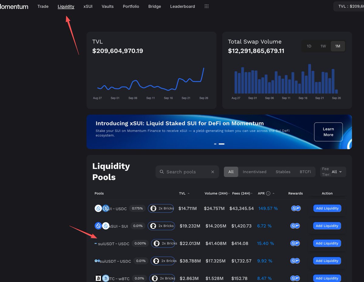 🤌选择的挖矿交易对,如果你担心市场波动 $SUI 的价格下跌,你可以去做 suiUSDT-USDC,15% 左右的年化已经维持很久了,非常香。