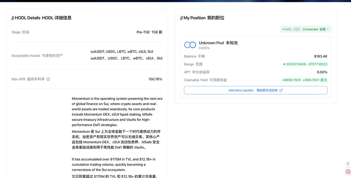 🤌这次不再需要跟 @FalconStable 一样只能通过 Buildpad 的 HODL 入口进去存钱才算,而是可以直接绑定你已经在挖 $MMT 的 Sui 钱包地址(太棒了!省掉大量人工)