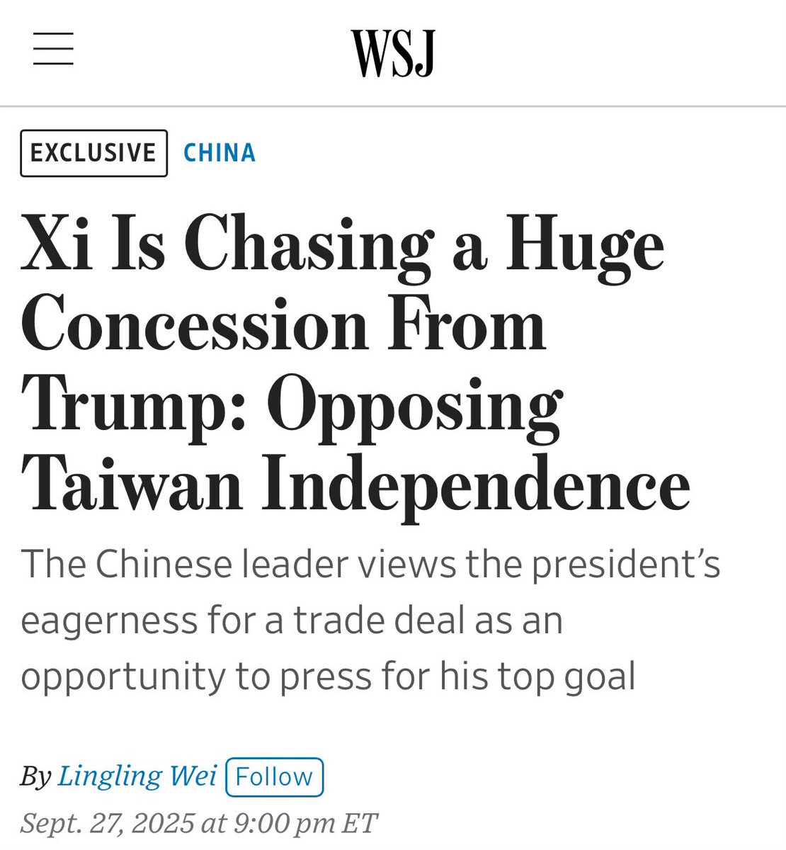 This would be the mother of all bad deals.Opposing Taiwan independence is a de facto endorsement of Beijing’s expansionist claims over the island-democracy.Trump should laugh Xi out of the room if he makes this request.