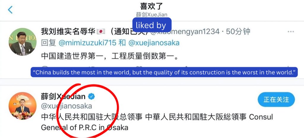 World No.1 in building, World No.1 from the bottom in quality.”Even the Chinese Consul General in Osaka liked this comment.When propaganda collides with reality, sometimes the truth slips through in a single click.#China #Propaganda #Construction #TGTM