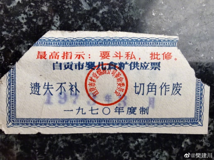 1970年,自贡市婴儿食糖供应票,遗失不补,切角作废。