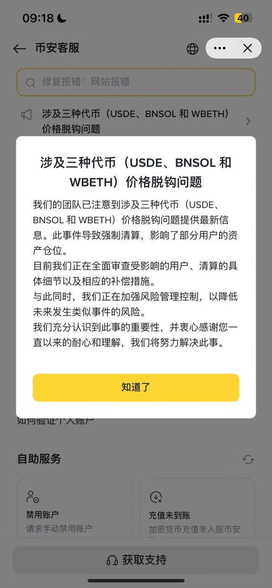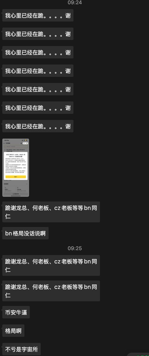 为啥我对币安有迷之自信?因为一次次黑天鹅经历过来,他们基本都能在大家感觉天要塌了的时候站出来顶一下。在今天因为脱锚被清算的人眼中, 这公告就跟救赎的光一样,看到本末群里受重创的群友发言,还挺震撼的。