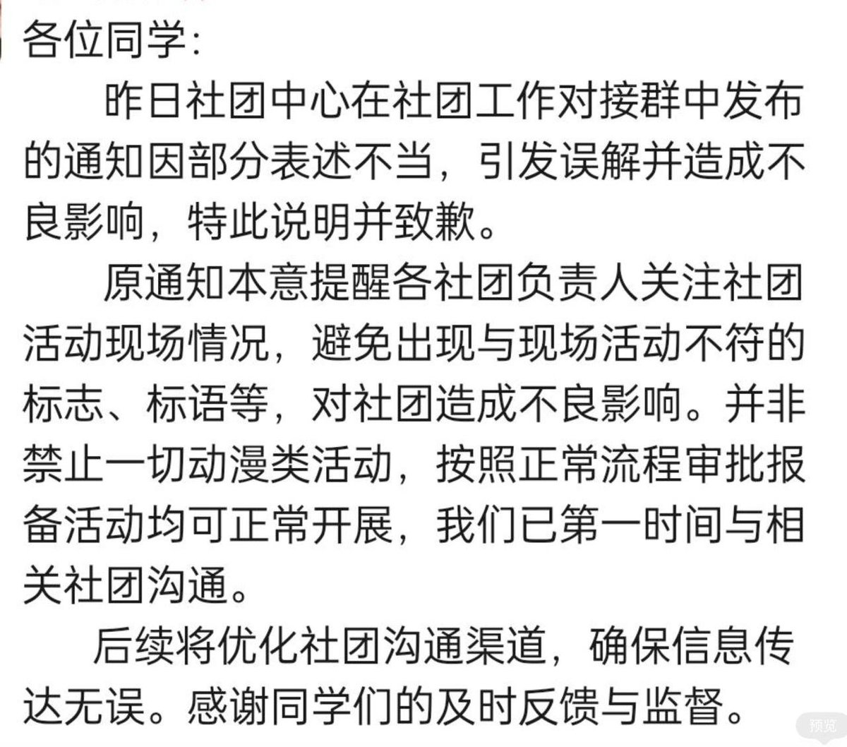 针对此前禁止二次元和动漫类活动,北京航空航天大学社团中心发布致歉信