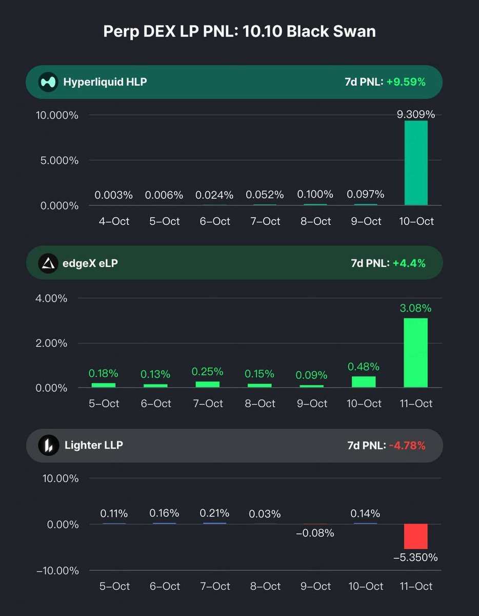 昨天发Perpdex极端行情对比的时候,我对 @edgeX_exchange 的LP财库收益是很不满意的,因为eLP 0.48%日收益在 @HyperliquidX HLP的接近10%收益下显得很不符合体感。