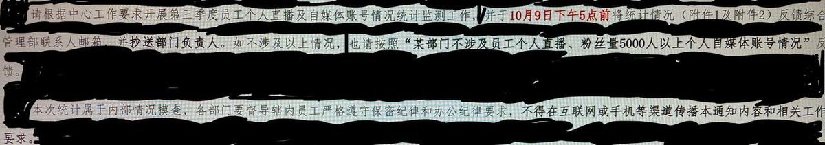 网友投稿:中国农业银行研发中心每季度要求自媒体粉丝超过5000的员工向管理部和部门负责人登记个人账号信息,对员工账号信息进行监测管理,分析研判,及时发现苗头性问题。对妄议国家大政方针,吐槽工作压力、薪资待遇,要第一时间处置,消除隐患。