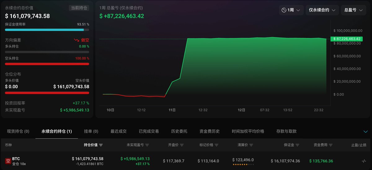 收了你的神通吧🥲大盘刚涨一点「高调换仓 $ETH 的 $BTC 远古巨鲸」又开了 1.6 亿美金的空单…1011 单地址做空获利 8744 万美元后,过去半小时他又开了 BTC 10x 空单,持仓 1,423.4 BTC,开仓价 $117,369传送门 👉
