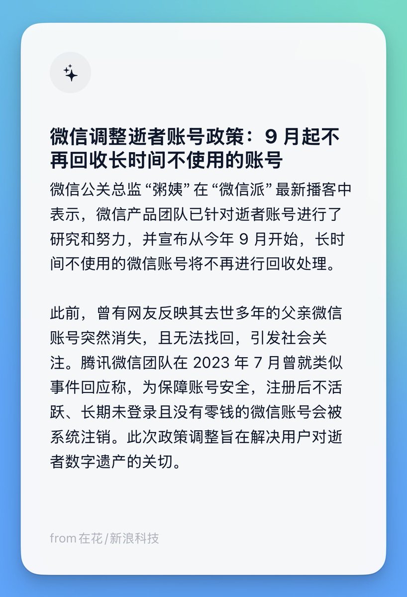 🙏后续:9 月起,微信不再回收“已故用户”的账号在发展、在进步了!期待数字遗产领域的规则越来越健全。