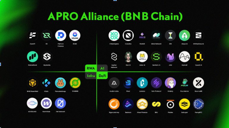 @APRO_Oracle 就是做到了这一点,基于BNB Chain构建了多赛道预言机,目前已经服务了BNB Chain上约40多个项目,覆盖 RWA, AI, DeFi 每一个风口赛道,这种就很上道了。