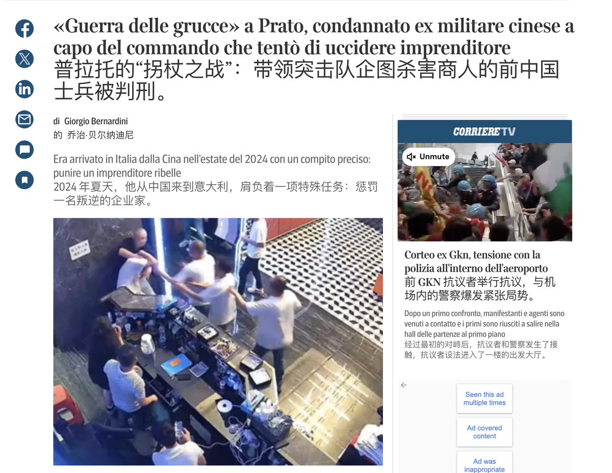 意大利“衣架之战”(La guerra delle grucce):前中国军人因谋杀未遂被判刑10月17日,意大利普拉托法院宣判一起震惊中意侨界的案件:36岁的中国公民、前中国人民解放军士兵方能银(Nengyin Fang)因参与谋杀未遂,被判处7年6个月监禁。这起案件被媒体称为“衣架之战”(La guerra delle