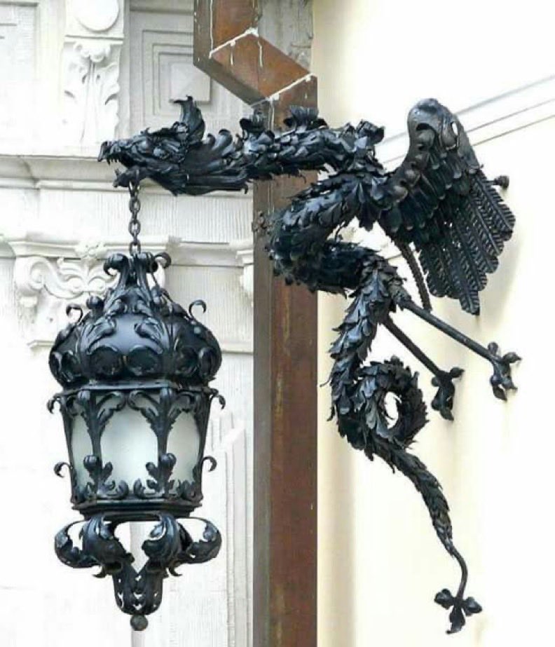 This dragon porch light is on the Casa Bruno Quadros building along La Rambla in Barcelona, Spain.Designed by Josep Vilaseca in 1885.