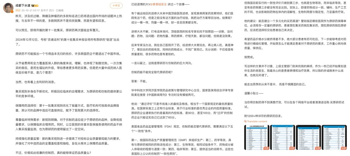 不过,他最核心的质疑是:在价格被压至极低的情况下,仿制药是否能够完全取代原研药?或者退一步说,仿制药的疗效和安全性是否真的能得到保障?