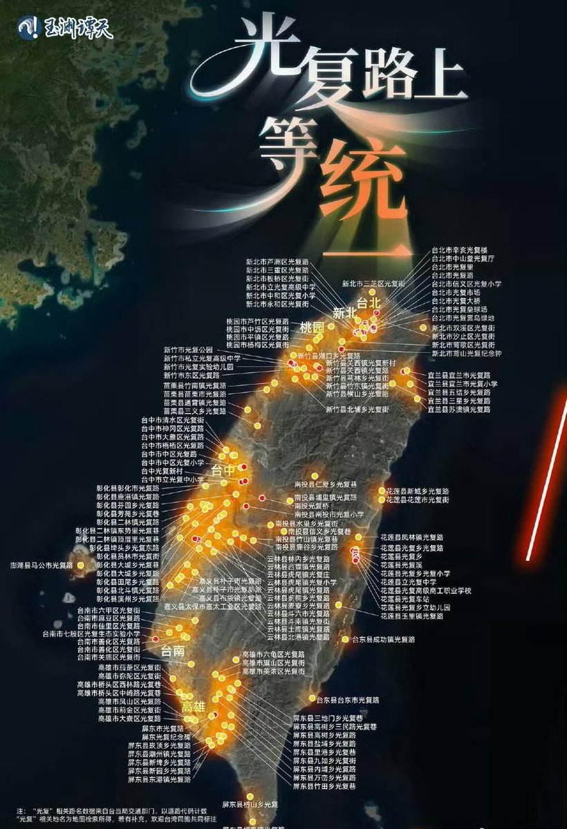 10月25日,央视旗下新媒体账号“玉渊谭天”发文《台湾光复纪念日,是全体中华儿女的集体意志》,指出当下台湾岛内以“光复”为名的道路多达151条,文章配图以醒目文字写道:“光复路上,等统一”。那么,有没有一种可能,台湾的‘光复路’是中华民国政府希望“反攻”并“光复”大陆。