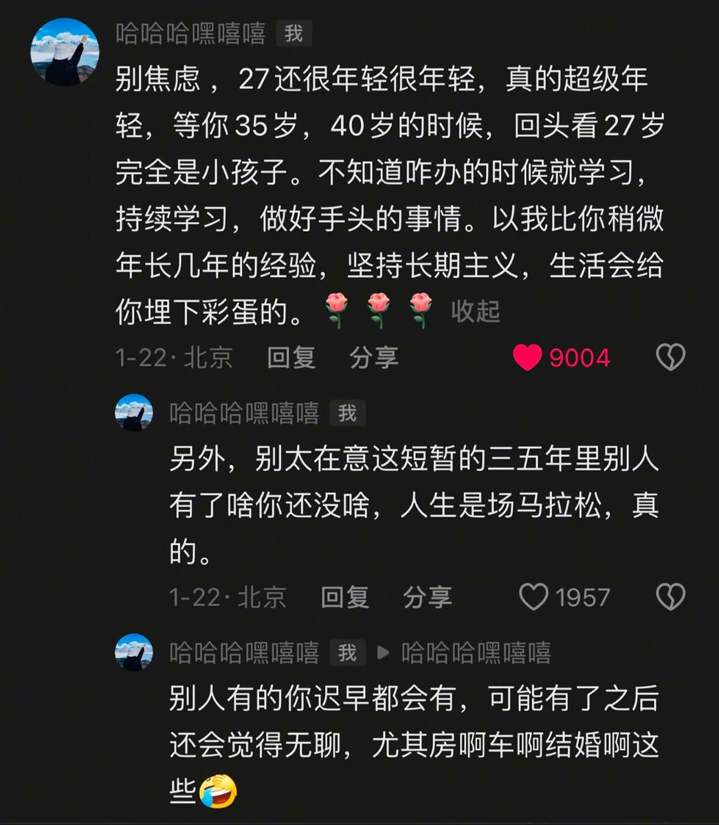 越是年轻的心灵,面对困境时,越容易有一种永恒的绝境感,但事实真如文中所说的这样,27岁还很年轻,有大把时间、大把空间去试错,或者说体验人生。